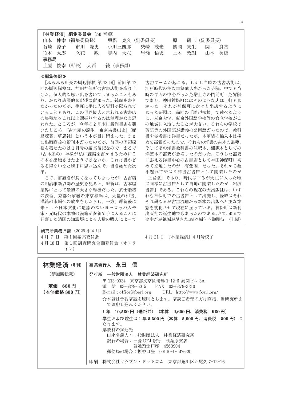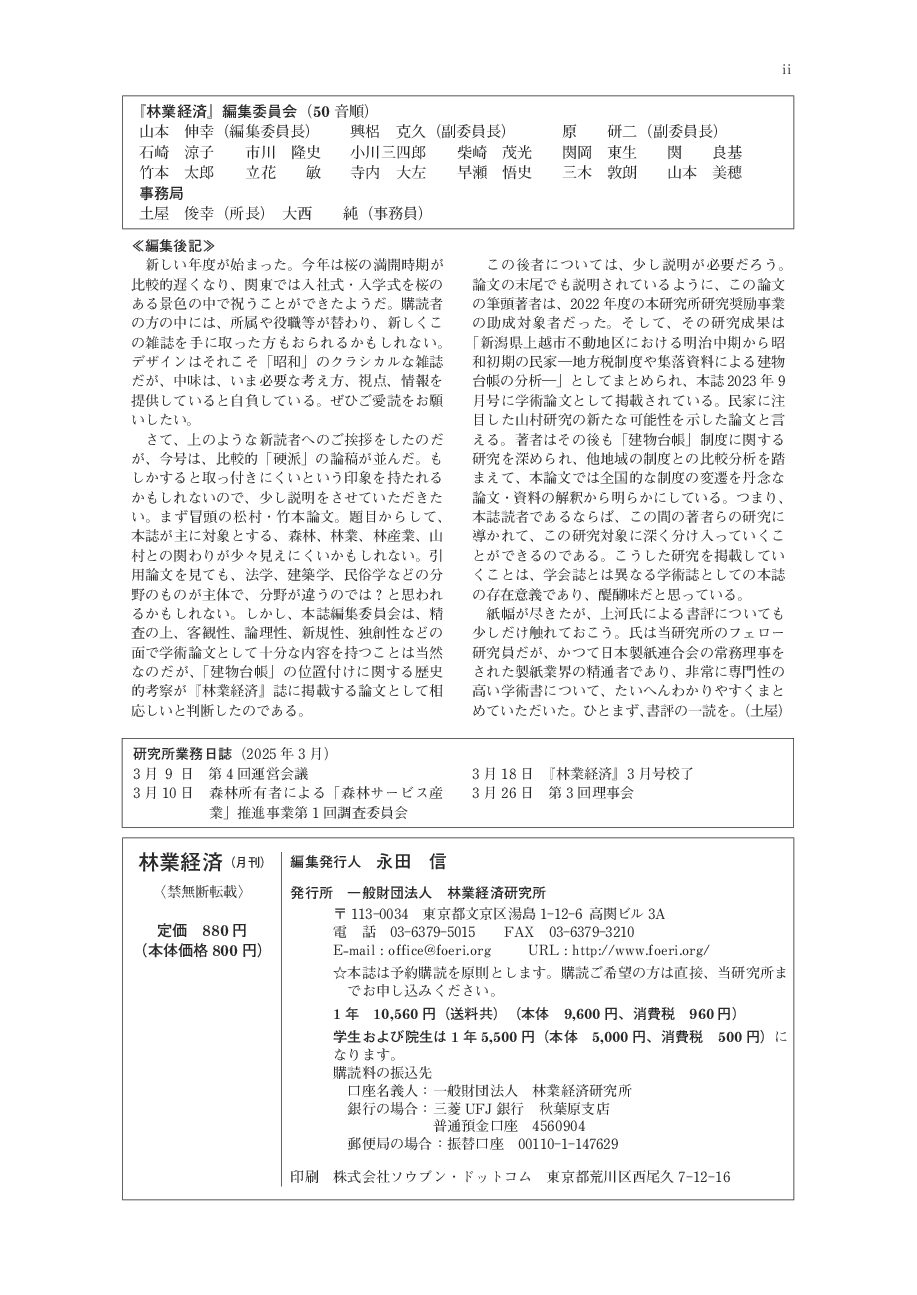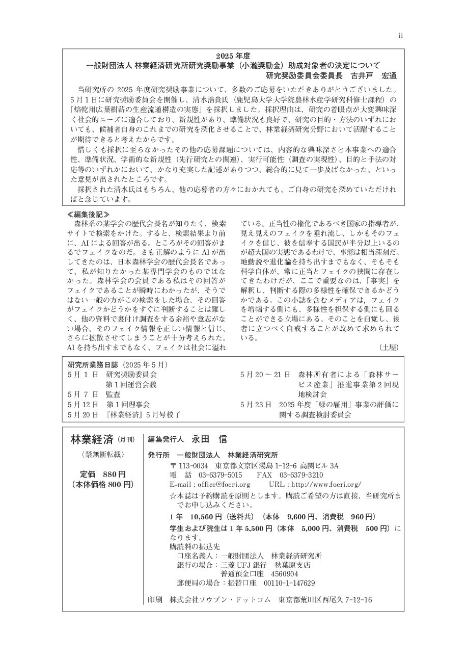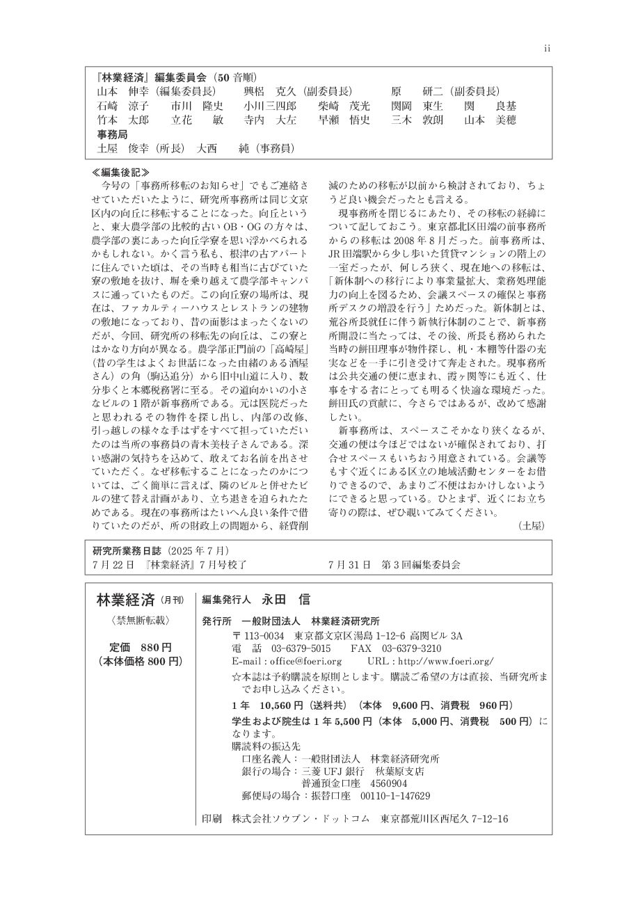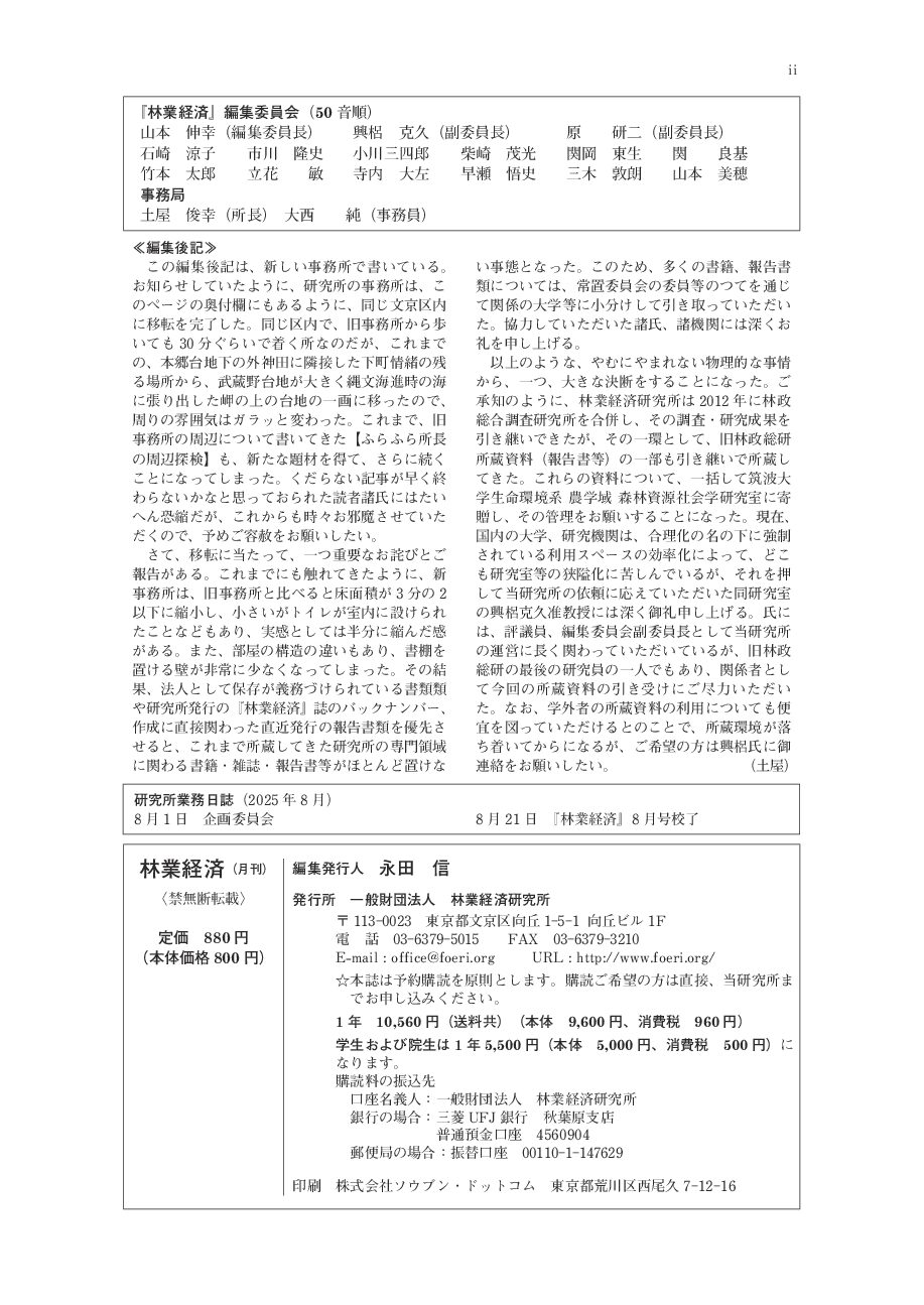 どうしてもこういう欠点があるので、『林業経済』誌のバックナンバーを所蔵されている各位、機関等におかれては従来同様、バックナンバーを大切に保管され、折に触れてそれを活用されるようおすすめします。