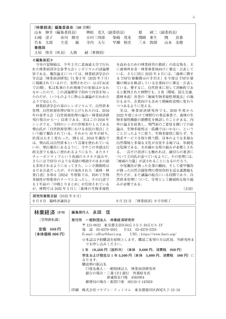 2. 直近の『林業経済』誌
